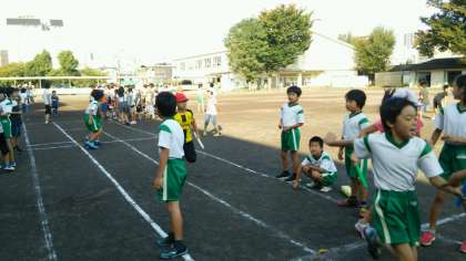 リレーの練習に汗を流しています。
