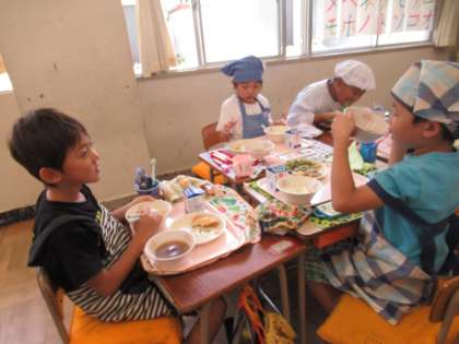 みんなで食べると、苦手なお魚やお野菜も、なんとなく食べられてしまうから不思議です。