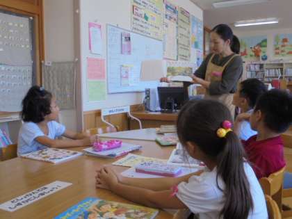 学校司書さんに読み聞かせをしていただきました。毎回いろいろなお話を用意してくださり、子どもたちは大喜びです!