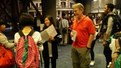 外国の方と、積極的に会話をしています。