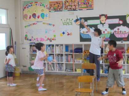 大雨でグランドが使えなかったので、休み時間は教室で遊びました。