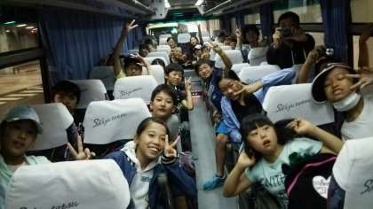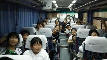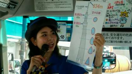 全員元気に二日目をスタートしました。スカイツリーに着きました。少し早かったので、バスで待機します。