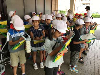 社会科の学習を進め、期待をふくらめていた子どもたちは、元気よく学校を出発しました。