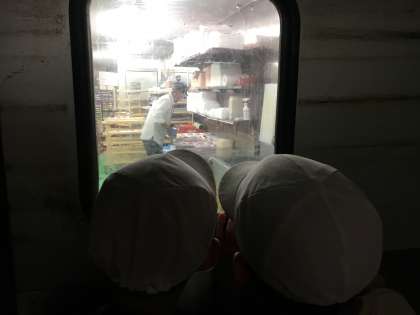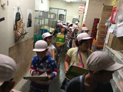 バックヤードを見学させてもらいました。「店の裏側ってこんな風になっているんだ!!」と目を輝かせ、施設の様子や店員さんの姿に注目していました。