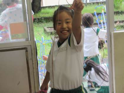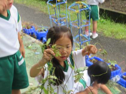 アサガオのつるを収穫しました。長〜いつるが採れました。リースに使うようですよ。
