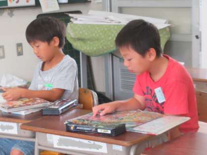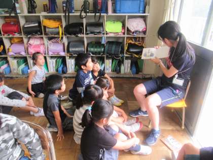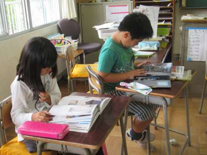 読みたい本のある子は読書を、そうでない子は先生の読み聞かせで本の世界を楽しみます。