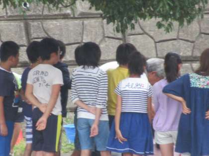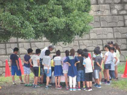 遠目に見たので定かではありませんが、流れる水のはたらきを学習しているものと思われます。