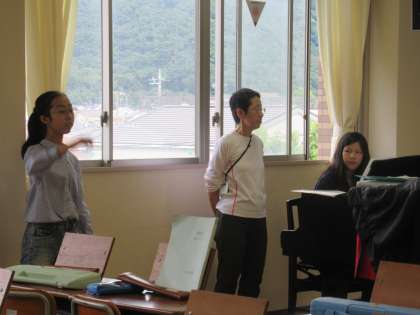 音楽発表会で披露する合唱曲を練習していました。まだ歌詞が頭に入っていないことを、指揮者から指摘されていました。さあ、本番目指して、練習を頑張ろう。