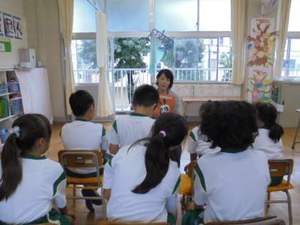 読み聞かせをしていただきました。「ありがとう」は魔法の言葉ということが心に響きましたね。