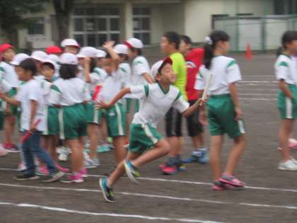 昨日のリレー大会が雨で延期になったので、今日もバトンパスを練習してます。