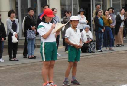 運営は5年生が行いました。めあての発表は、2年生の各クラスの代表が行いました。