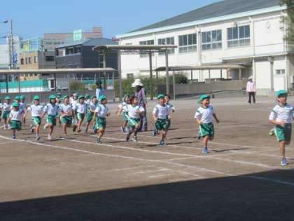 先生の指示をしっかり聴いて、まず、3分間走に取り組みます。
