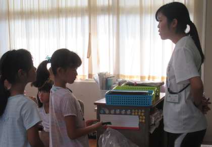 リレー大会で使ったハチマキを、班ごとに先生に返します。指示をきいて、すばやく行動できました。
