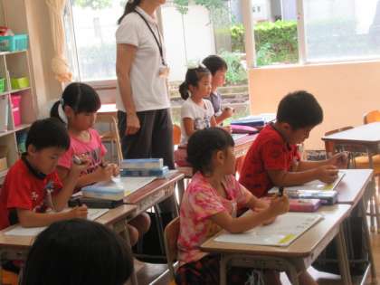 先生が問題を書きはじめると、すぐにホワイトボードに式を立てはじめました。