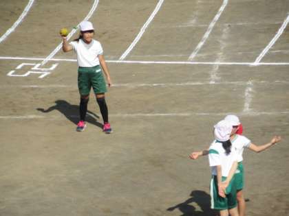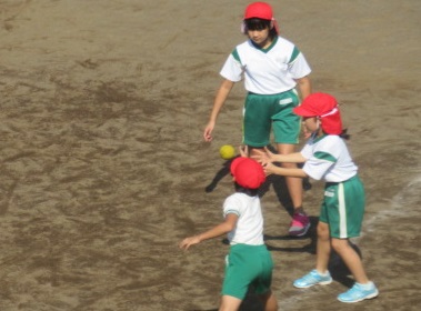 体力テストのボール投げでは、ボールを拾って戻す、補助の仕事もします。その練習もしました。
