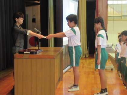 委員会活動の、後期委員長任命も行いました。代表の堂々としたあいさつに、下級生は尊敬の眼差しで聴いていました。