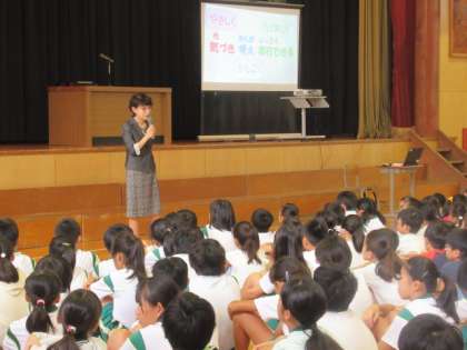 校長からは、1年の後半を迎えるに当たり、「やさしく(気づき)・かしこく(考え)・たくましく(実行する)」について再度、話をしました。折り返し点で、気持ちも新たにスタートを切ってほしいことを、学年ごと具体的に伝えました。