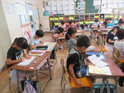 新出漢字を学習しています。もう、「年」や「貝」といった、画数の多い漢字も習っています。ただ単に文字を覚えるだけでなく、どんな使い方をするのか考えることで、活用する力や語彙の数を増やしていきます。