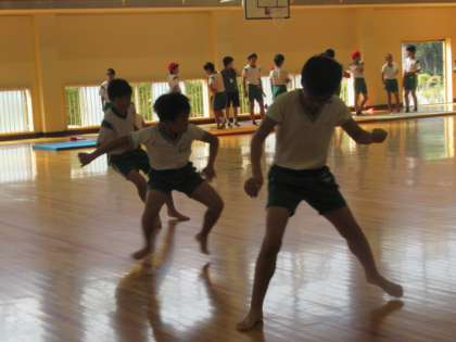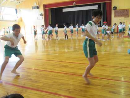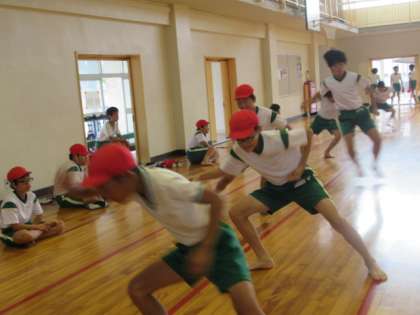 今日は、新体力テストが実施されています。<反復横跳び>