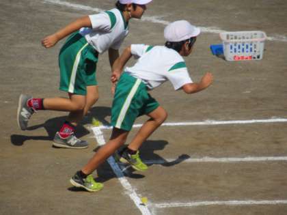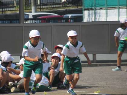 5,6年生の測定終了後、今度は3,4年生が新体力テストに挑戦しています。<50メートル走>