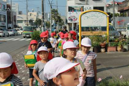 2回目の町探検に行きました。赤グループは給食のパンでおなじみの冨士家パンさんを訪れました。「何人くらい働いているんですか?」「なぜパン屋さんになったんですか?」など、気になることをたくさん質問しました。美味しい香りが漂うキッチンものぞかせてもらいました。明日の給食のパンが楽しみですね。