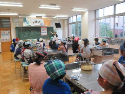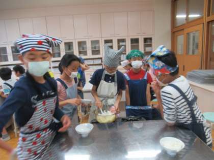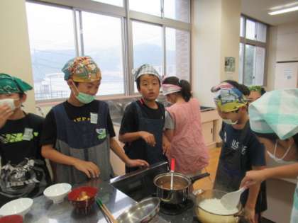 ご飯を炊くことも、野菜を切ることも、自然教室の飯ごう炊さんに役立つ学習なので、熱が入ります。