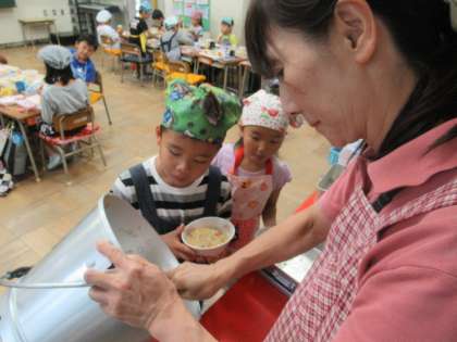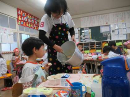 豆乳のシチューが、大人気! まだ、おかわりがあるか、ついついのぞき込んでしまいます。