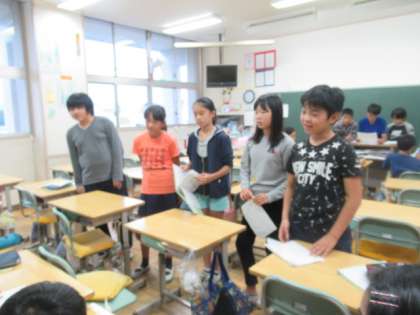 班ごとの少人数グループで、修学旅行の楽しさや留意点を伝え、もうすぐやってくる自然教室や来年の修学旅行の参考にしてもらおうという会です。