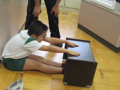 体力テストで、柔軟性を調べていました。