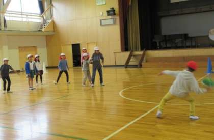 体育館で遊んだ班は、ドッジボールを楽しみました。