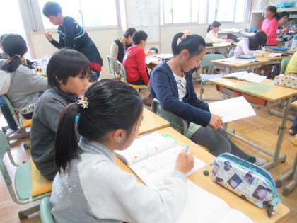 難解な問題を解きました。友だちと考え方の違いを聴きあったり、教えあったりしていました。