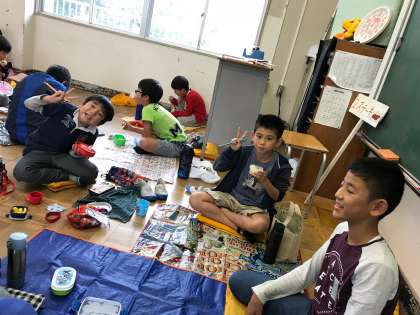 ペア学年同士でお弁当を頬張りながら、たくさんお話をしました。その後は6年生の考えてくれた風船バレーを楽しみました。高学年が低学年を思いやりながら活動する姿が、良いお手本になっていました。