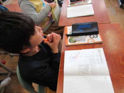 学習のはじめに、全員でそろってあいさつができました。こういう気持ちの切り替えが、集中して学習することにつながります。ノートもていねいにとっていますね。