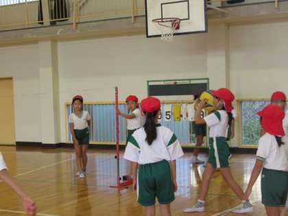 四小校区に居住し特別支援学校に通っているお子さんが、交流に来てくれました。該当学年の4年生との交流です。学期に1回行っており、今日は、4年1組が体育の授業で交流しました。
