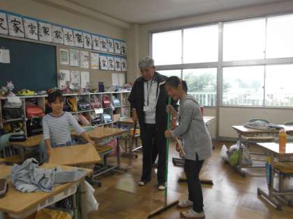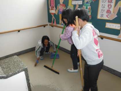 4年生は、木曜日に昼の掃除があります。どの子も黙って取り組んでいます。