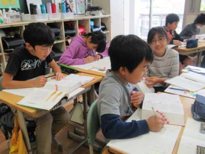 辞書を使って、意味調べをしていました。6年生ともなると、辞書引きにも慣れ、手際よく調べていきます。
