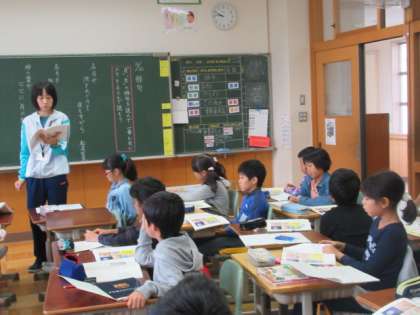 俳句の学習をしていました。たった17文字で情景を表現する俳句に、想像を広げていました。言葉を手がかりにして、天を仰いだり頭を抱えたりして想像している姿が、ほほえましいでしょう。