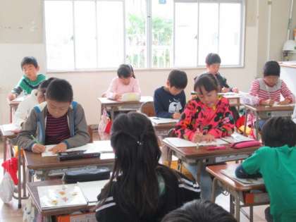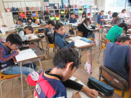 先生が黒板に書くスピードに合わせて、ノートに丁寧に書いていきます。
