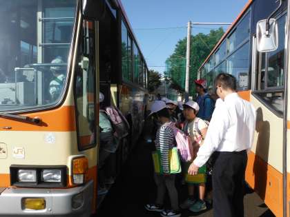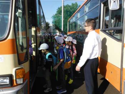 予定通り出発しました。朝の運動をしていた7組のみんなが見送ってくれました。