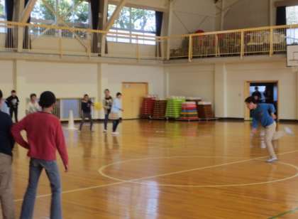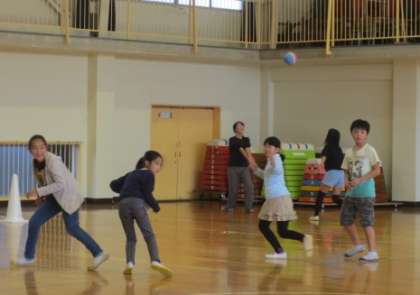 昨日の雨の影響で運動場が使用できない状況だったため、ロング昼休みは、体育館で遊びました。クラス関係なく、大勢でドッジボールを楽しみました。