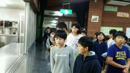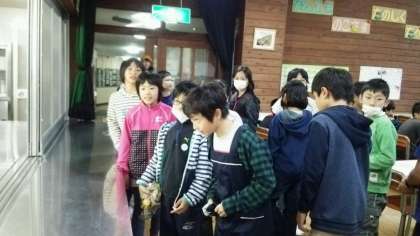 食事係のリードで、調理師さんたちにあいさつしてから、席に着きます。