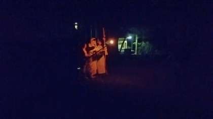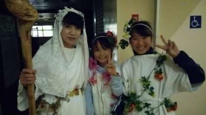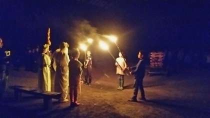 火の女神、火の子、桃沢に到着しました。子どもらに、聖なる火を授けます。