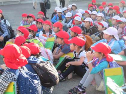 ドーナツベンチの所から、班ごとに出発します。先生の話をよく聴いて、約束を確認しました。