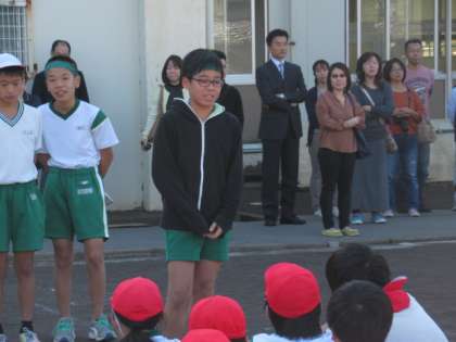 めあての発表は、1年生の学級代表が行いました。練習の成果を出したいと発表していました。