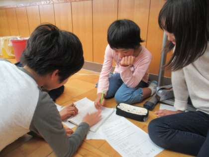次のなかよし活動「遊ぶ会 ロングバージョン」は、5年生が主催します。今日は、その計画を立てていました。