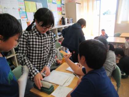 次のなかよし活動「遊ぶ会 ロングバージョン」は、5年生が主催します。今日は、その計画を立てていました。