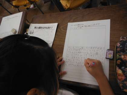 どの子の集中して取り組んでいます。昨日の楽寿園探険の反省かな?