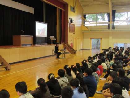 学校長からは、自然教室を報告しながら、5年生の頑張りを紹介しました。そして、四小のみんなのめあて、「やさしく かしこく たくましく」に、「自ら気づき 考え 実行する」ことの大切さを確認しました。