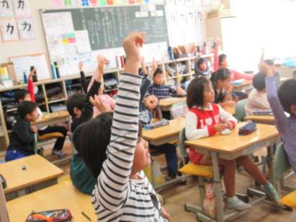 ローマ字の学習です。身近なことを題材に、表記の仕方を学習していました。