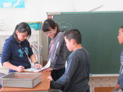 テストが戻ってきました。間違いを直して、先生に確認してもらいます。